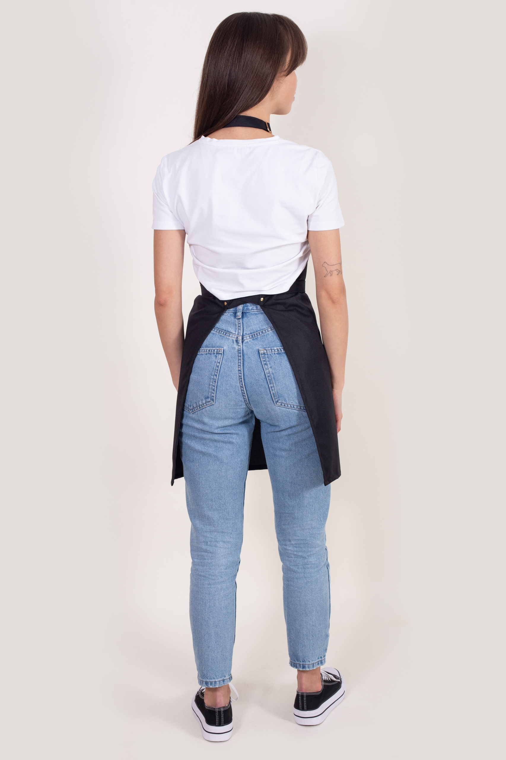 Fartuch o eleganckim, nowoczesnym designie idealnie dopasowuje się do każdego typu sylwetki dzięki odpowiedniemu krojowi i zastosowaniu wysokiej jakości materiału. Tkanina o zwiększonej gramaturze jest trwała, lekka i wygodna w noszeniu – podczas pracy praktycznie nie czuć jej na sobie. Materiał jest wodoodporny, co pozwala na łatwe usunięcie drobnych zabrudzeń, jednak nie jest chemioodporny, dlatego fartuch nie nadaje się do pracy z silnymi środkami chemicznymi, takimi jak farby fryzjerskie. Fartuch został solidnie wykonany przez naszą firmę VIPTEXTYLIA. Wyposażony jest w regulację paska szyjnego za pomocą metalowego zapięcia typu karabińczyk po obu stronach, co zapewnia wygodę i elegancki wygląd. Wiązany z tyłu lub z przodu paskami uszytymi z tej samej tkaniny, które są zakończone nowoczesnymi, metalowymi okuciami. Kieszeń znajdująca się z przodu fartucha została dodatkowo wzmocniona ozdobnymi nitami, co gwarantuje trwałość i stylowy wygląd. Co wyróżnia nasz fartuch?